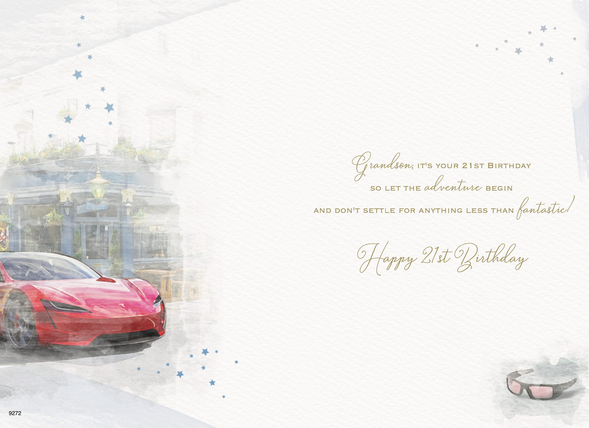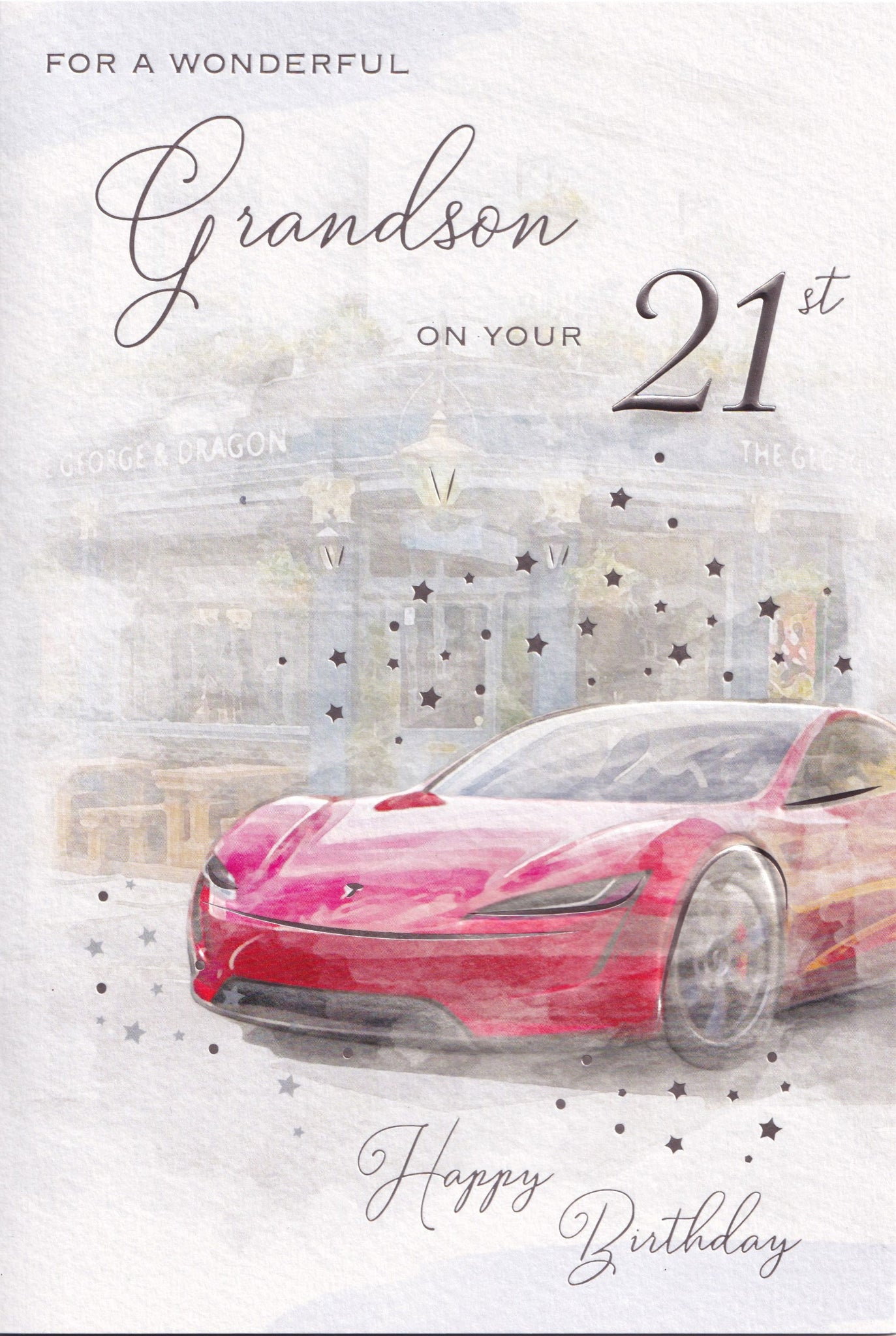 • Load image into Gallery viewer, Grandson 21 Birthday Card - Contemporary Car Design
