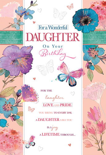 Daughter Birthday Card - Classic Butterfly & Flowers Design