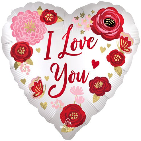 18” Standard I Love You Heart Helium Foil Balloon - Flowers Design