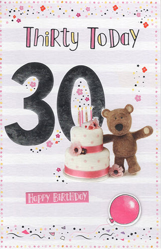30th Birthday Card - Cute Barley Bear Design