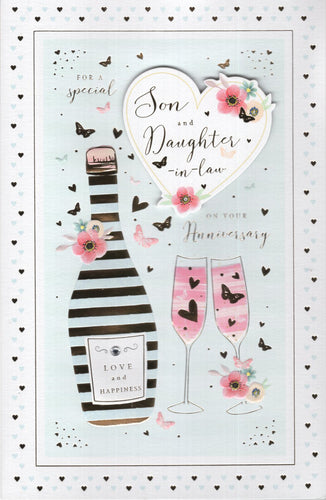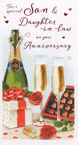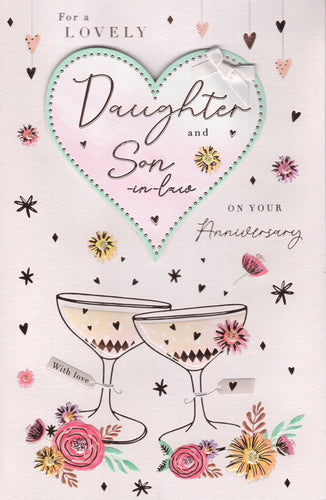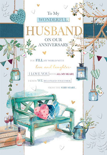 Wife Anniversary Card - Classic Hearts & Flowers Design