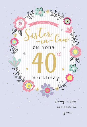 Sister in Law 40 Birthday Card